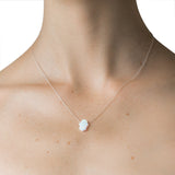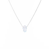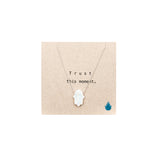 A Medium White Opal Hamsa Necklace. On a sterling silver, gold or rose gold fill 18-inch chain. Hamsa measures 15mm.