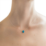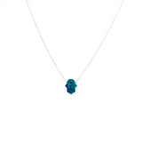 Ella (means) Goddess. A fiery peacock-green hamsa to highlight the inner Goddess in you. Available on a sterling silver or gold 16-18inch adjustable chain.