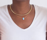 Our most popular style, the Nikki shimmers a bright iridescent blue, and when the opal hamsa catches the light, the opal hamsa glows (just like you.)