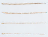 5.6mm links, Gold Fill : 6" long with 1" of additional adjustment hoops