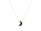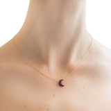 Black opal crescent moon with deep red flecks that shine - a reminder that in order to honor the light, we must also honor the dark.
